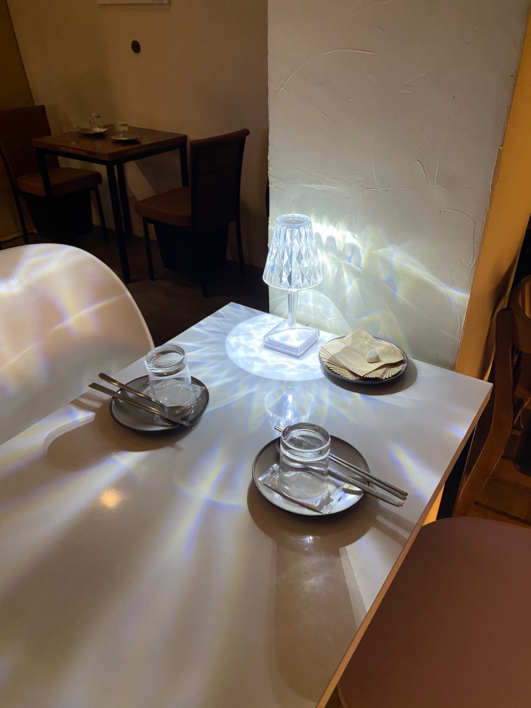 근데 4인 테이블에 있는 조명이 흰색 식탁에 반사돼서